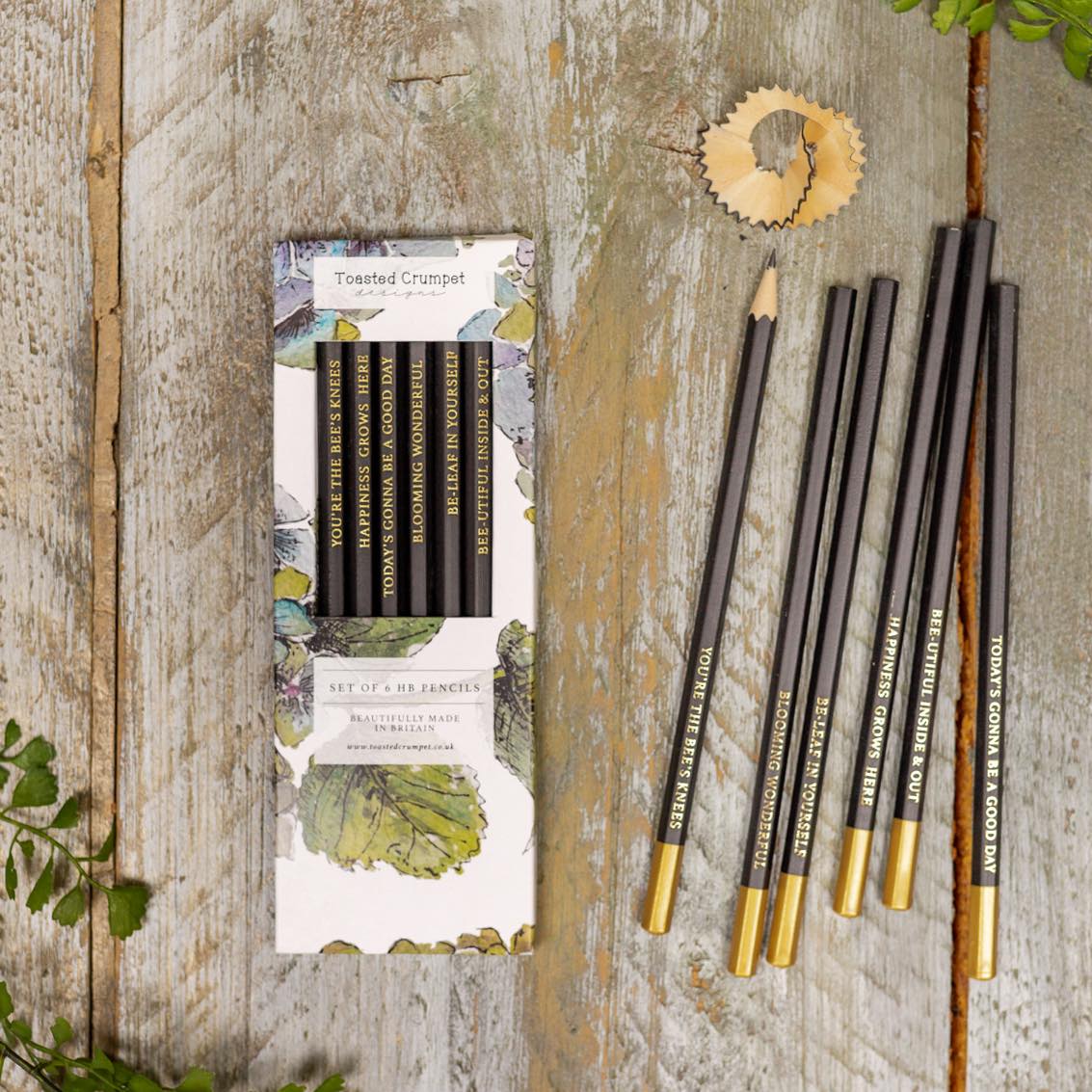 - Beautifully illustrated boxed pencil sets with six gold-dipped Pencils