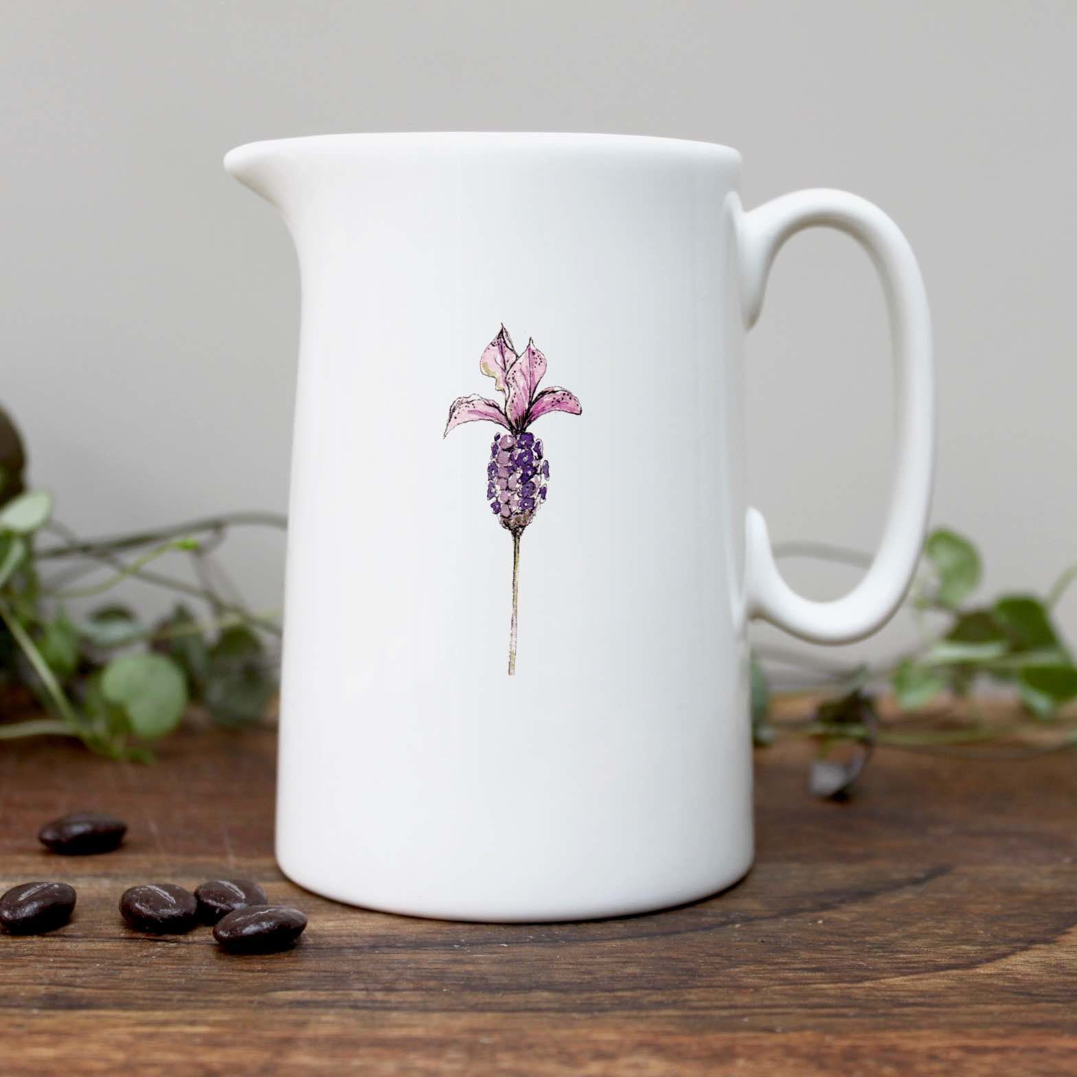 Beautifully finished Half Pint fine bone china jugs in a range of British countryside inspired designs based on original Toasted Crumpet watercolour paintings.