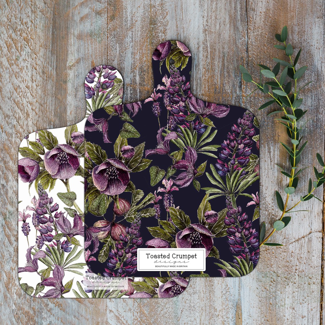 Beautifully finished double sided melamine mini chopping board from a range of British countryside inspired designs based on original Toasted Crumpet watercolour paintings.